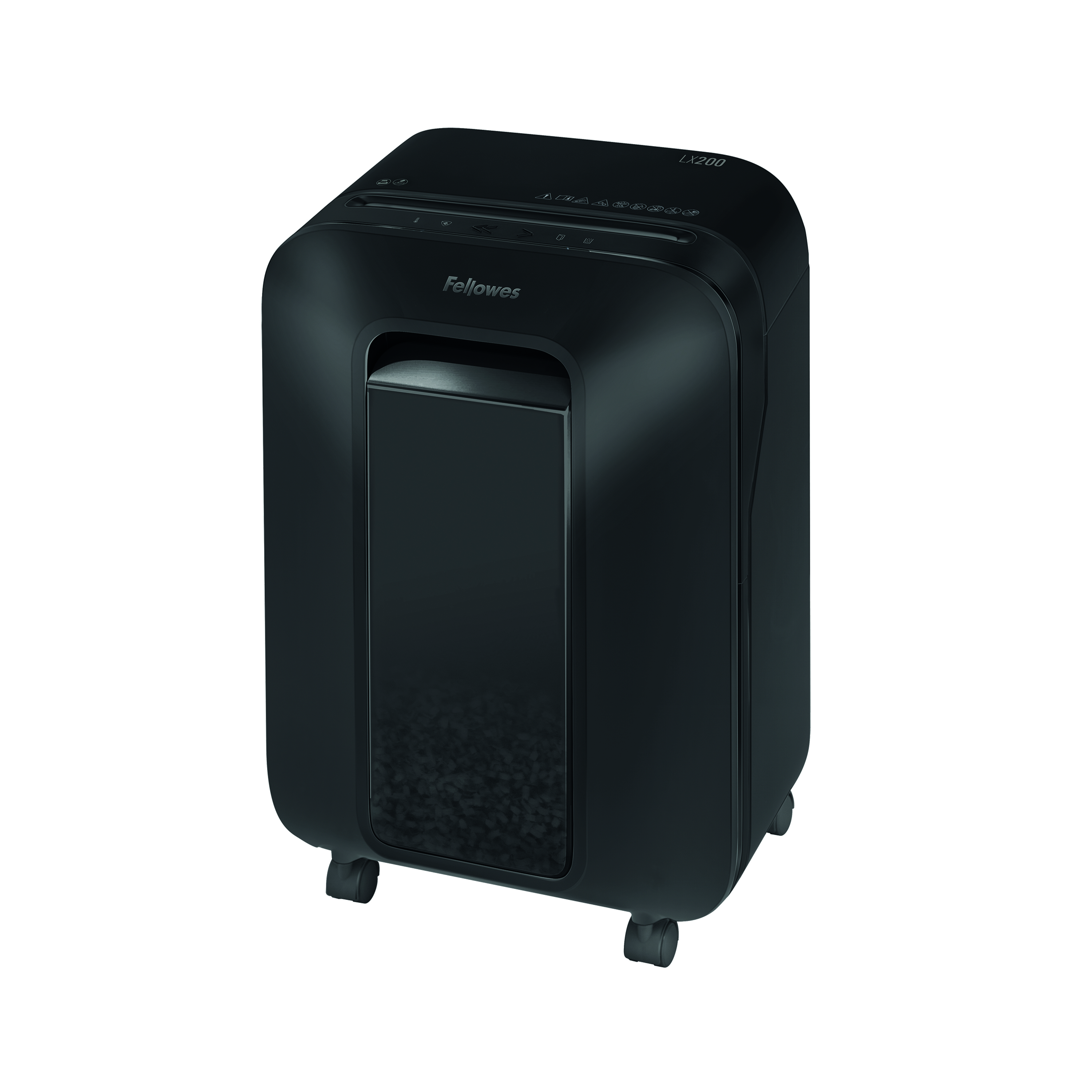 The Powershred LX200 paper shredder features the Fellowes 100 percent jam proof system to eliminate paper jams and provide relief from the number one shredding frustration. Designed with safety in mind, your mini cut paper shredder will automatically disable when hands come into contact with the opening, stopping the cutters immediately. The LX200 paper shredder has a moderate run time and will shred continuously for up to 10 minutes before requiring a 15 minutes cool down period. Fellowes shredders are built to last with solid steel cutters, a powerful motor and parts that are engineered to outperform our competitors.