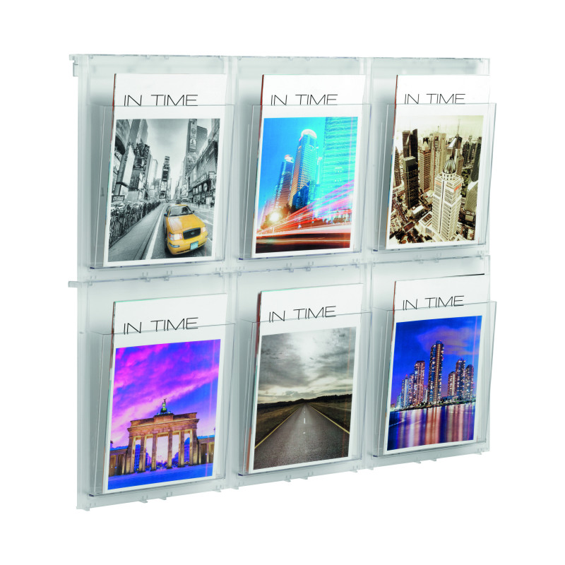 Ideal for displaying magazines and leaflets, this literature display wall unit has a modern, stylish design for use in the workplace. The 6 pockets can be used for A4 size documents and are transparent for maximum impact, even at a distance. It is constructed from durable, shatterproof material to withstand the rigours of everyday office life.